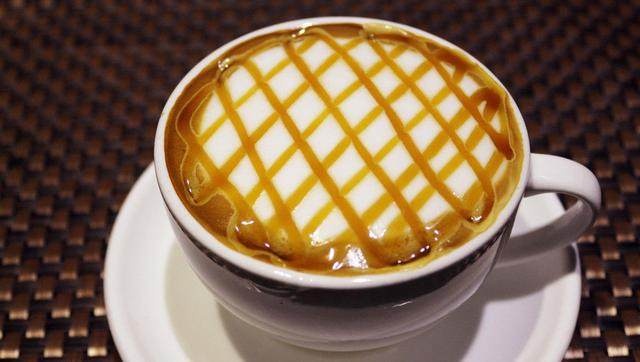 3.焦糖装入挤瓶内,在奶泡上画花样。