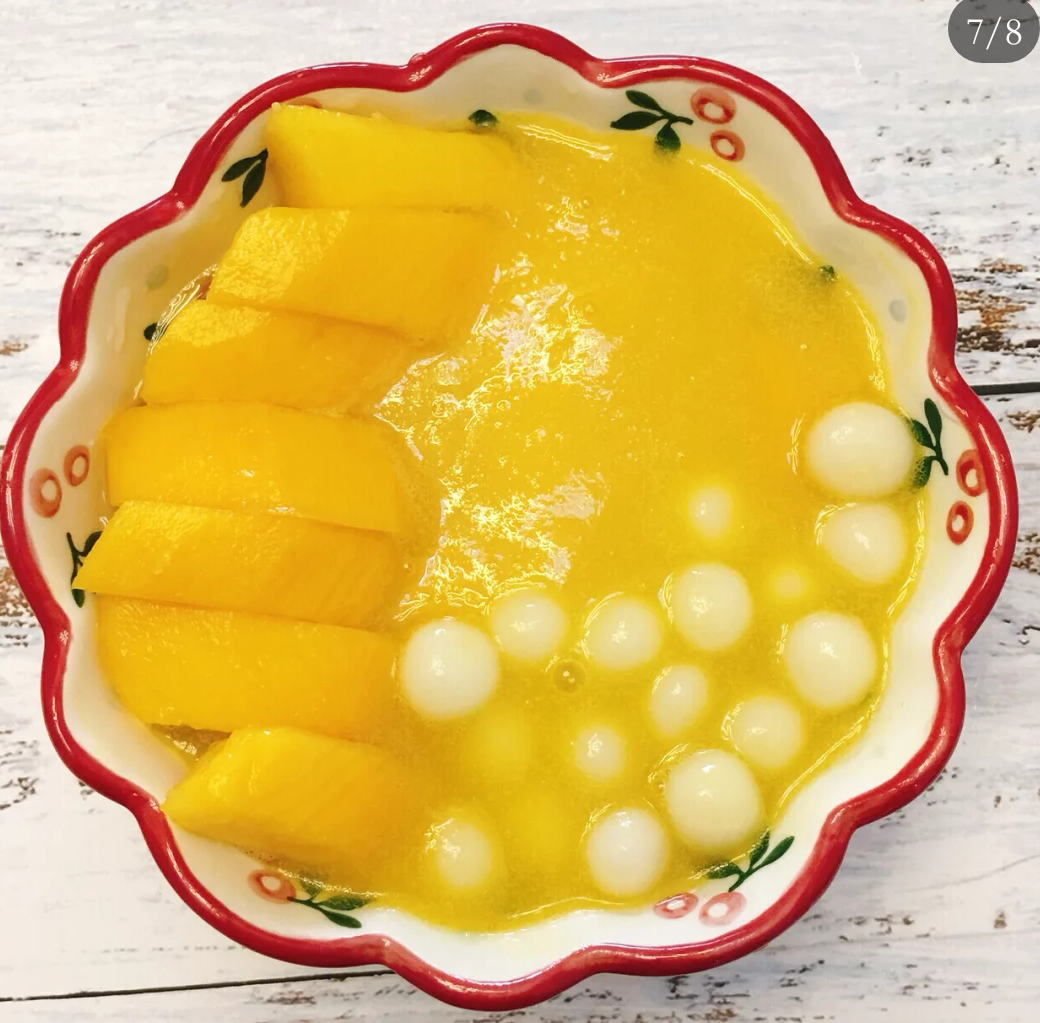 夏日必备甜品,鲜嫩多汁的台湾水仙芒与沁爽Q弹的糯米小丸子,又会碰撞出怎样的火花呢?