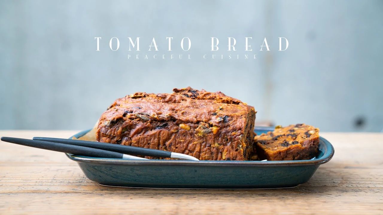 番茄咸面包, 没有用到一滴水直接用番茄汁揉面, 内馅加了番茄干和罗勒叶, 这是一款咸口味的面包, 日常多吃甜面包的话可以用来换换口味哦