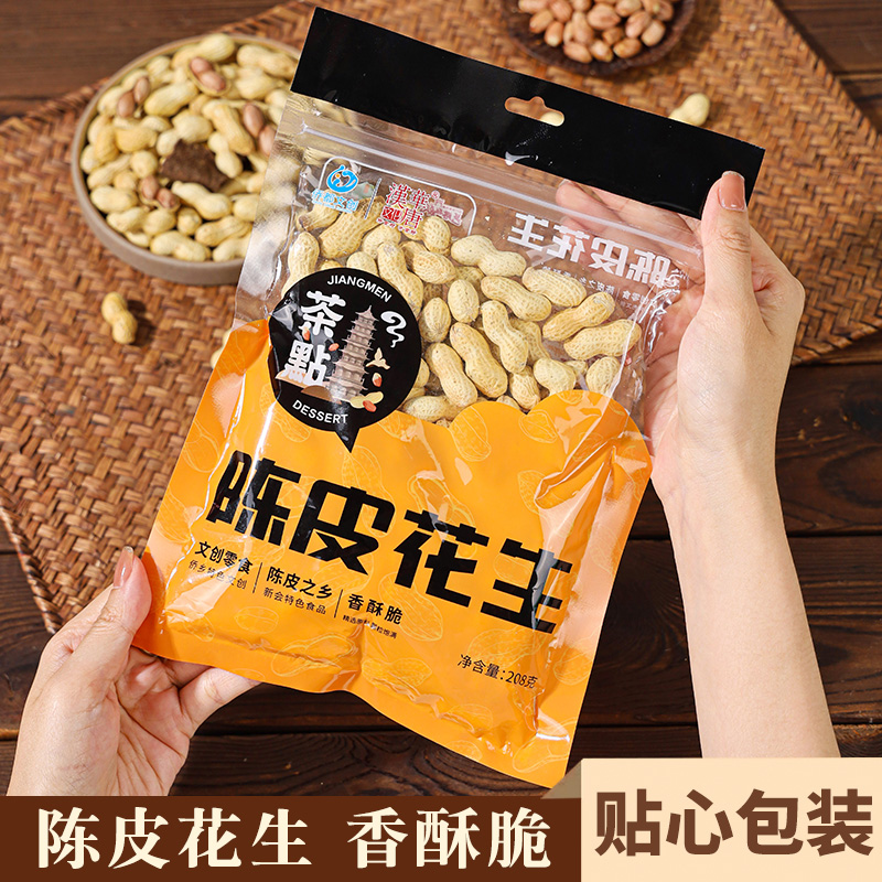 陈皮花生是一种以花生和陈皮为主要原料的美味食品。与普通花生相比,陈皮花生具有独特的口味和香气,它融合了花生的香味和陈皮的醇厚味道,使其更加浓郁可口。而且,陈皮花生的制作方法简单,可以作为休闲小零食享用。