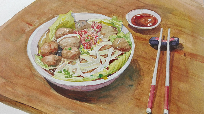 潮汕粿条是广东潮汕有名的地方小吃,广州人称为“沙河粉”,潮汕人称为“炊粿”、“粿仔”。这种小吃是用米粉浆薄层蒸熟晾凉之后,切条备用的小食半成品。炒成的笋粿条,热腾腾、香喷喷,其特色是色泽白里带赤,柔软醇香,有独特的名笋风味。