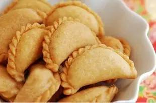 2、包上馅料。两边对折,收好边,用指甲沿边一路轻轻的锁边,捏成麻绳状。