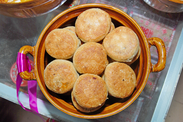 4.风味独特:香、甜、软、肥。因其饼皮是用猪油与面粉调制而成的酥皮,馅料以糖、冬瓜、白膘丁、香葱、熟猪油、芝麻等配制而成。