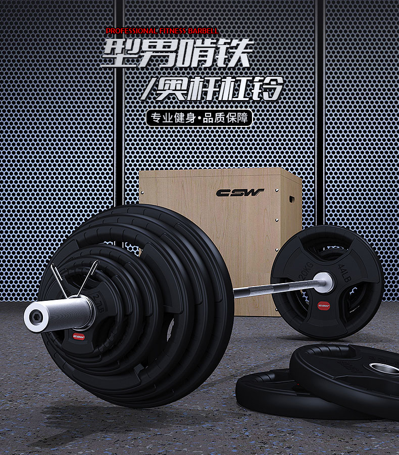 烤漆杠铃,家用组合,套装加粗奥杆,大孔手抓铁芯,包胶杠铃片