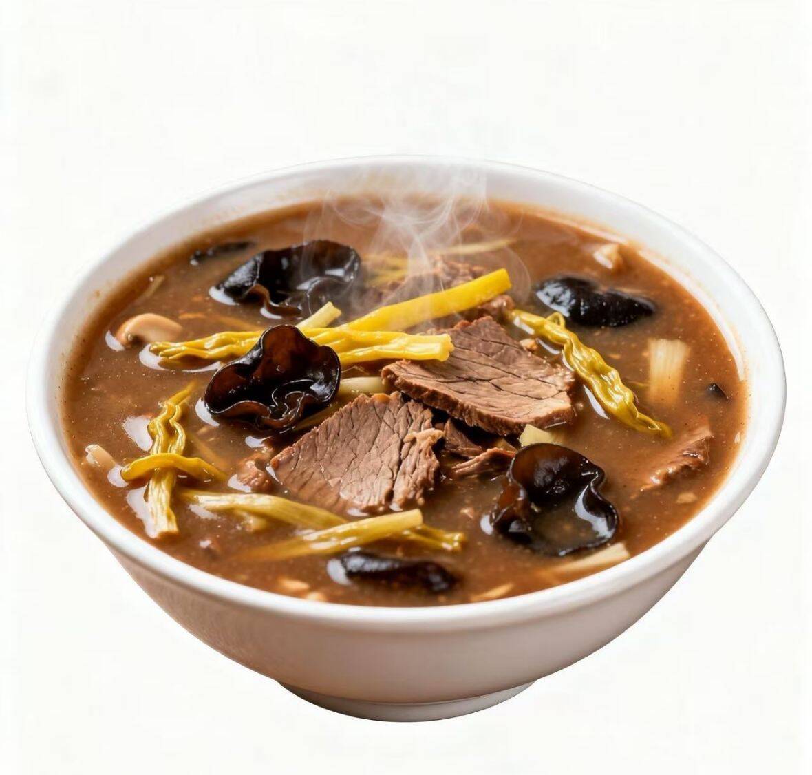 胡辣汤是中国北方早餐中常见的传统汤类名吃,尤以河南逍遥镇胡辣汤最为出名。其特点如下: 历史文化 起源于宋代,最初由肉粥和酸辣汤组合而来,后经多次改良形成独特风味。逍遥镇胡辣汤制作技艺现已被列入国家级非物质文化遗产名录。 口感与食材 以香、鲜、糊、辣闻名:汤底用浓牛肉汤制成,搭配面浆勾芡呈现粘稠质感,胡椒提辣,肉香与麦香交织。 主要食材包括牛/羊肉、面筋、粉条、黄花菜、木耳等,部分做法还会加入豆腐皮、胡萝卜等。 流派与差异 逍遥镇胡辣汤:周口市西华县特产,胡椒味浓郁,注重牛羊骨
