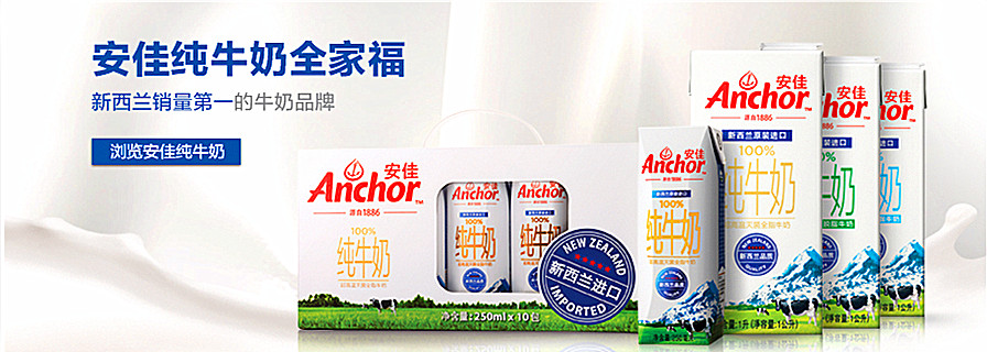 Anchor(安佳)是新西兰乳品巨头恒天然集团旗下的品牌。在120多年的经营中,Anchor一直致力于产品革新与开发,现在已经成长为一个全球性企业。产品销售到亚洲、中东、台湾等地,形成了世界性的销售网络。安佳在中国享有很高的知名度,在英国、亚洲和中东都享有盛誉.多年以来,安佳代表着乳品发展的创新品牌。新西兰安佳牛奶在中国不能说家喻户晓,但是也是享有较高知名度的,新西兰安佳牛奶是新西兰巨头——恒天然旗下的产品。多年以来,新西兰安佳牛奶作为一个乳品发展创新的品牌,致力于研发及生产创新的、高档的乳制品来满足大家的需求。不管是儿童还是成年人,亦或是家里的中老年人,新西兰安佳牛奶都能满足他们的营养需求。
