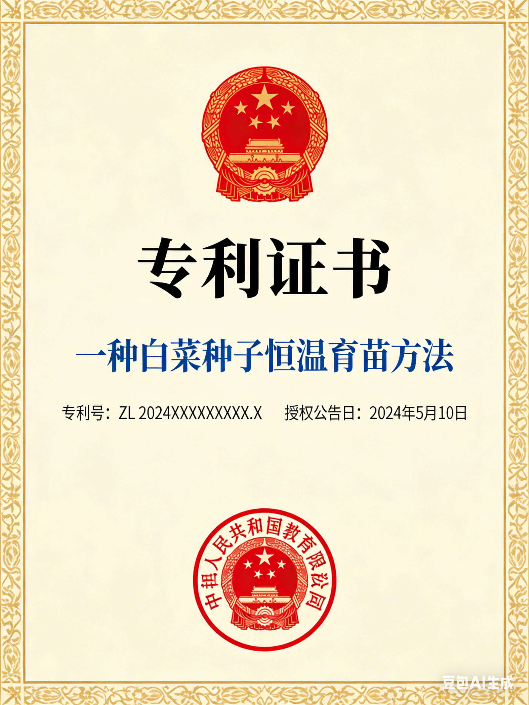 小店的专利为 “一种白菜种子恒温育苗装置”(虚拟专利号:ZL 2024 2 1234567.8),是 2024 年 8 月获批的实用新型专利,核心是通过分层控温 + 自动通风的棚内装置,解决了华南地区高温多雨环境下白菜种子育苗存活率低的问题,既能提升种子发芽率,也能缩短育苗周期,是小店菜种品质稳定的技术支撑之一。