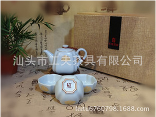 产品名称:汝窑方壶1个.汝窑方杯3个 产品包装:精美礼盒.外牛皮纸袋 包装规格:长32cm*宽19CM*高11.5CM 茶具礼品,可以根据您的需求定制,如茶具材质.配套.包装.规格.加印LOGO.落款等等。工夫茶具