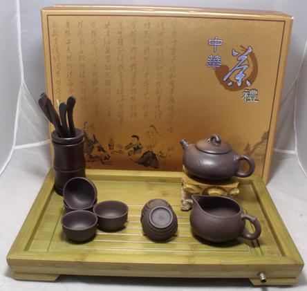 功能:适合冲泡乌龙茶、普洱茶等 定制工艺:激光雕刻、丝印 内含:茶盘一个,紫砂壶一把,紫砂公平壶一个,紫砂杯6个,茶道一副工夫茶具