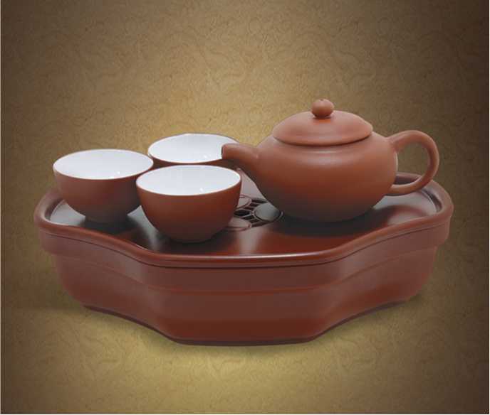 品名:袖珍型旅行茶具 货号:GF-125 茶盘规格: 长19.5cm×宽13.2cm ×高5.2cm 材质及组合: ABS茶盘1副、茶壶1 把、茶杯3个 包装:彩盒