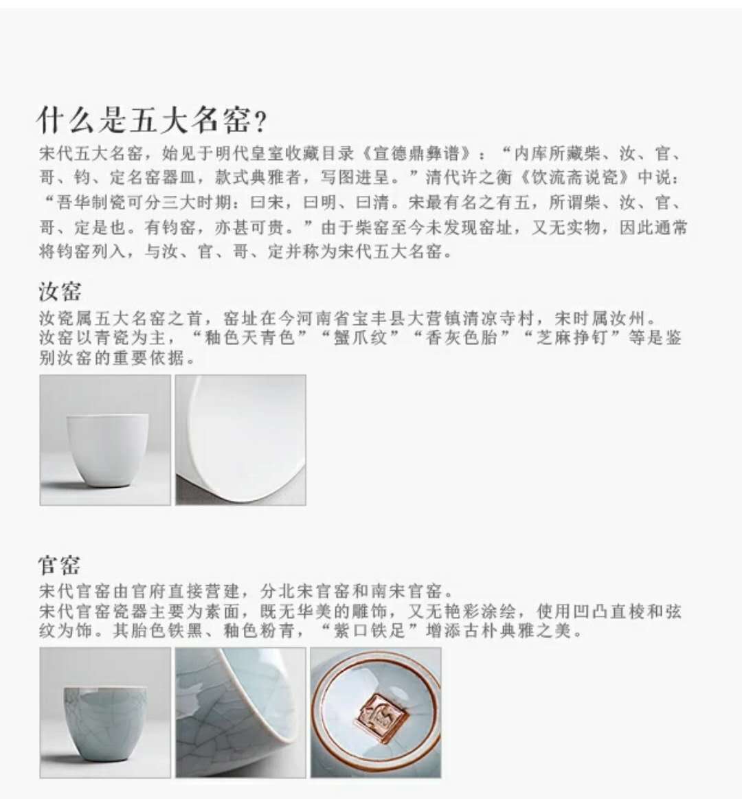 宋代五大名窑之说,始见于明代皇室收藏目录《宣德鼎彝谱》:“内库所藏柴、汝、官、哥、钧、定名窑器皿,款式典雅者,写图进呈。”