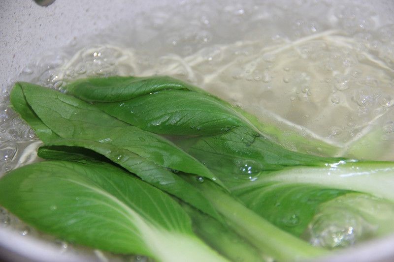 将面和青菜过水煮好,捞出放到碗中