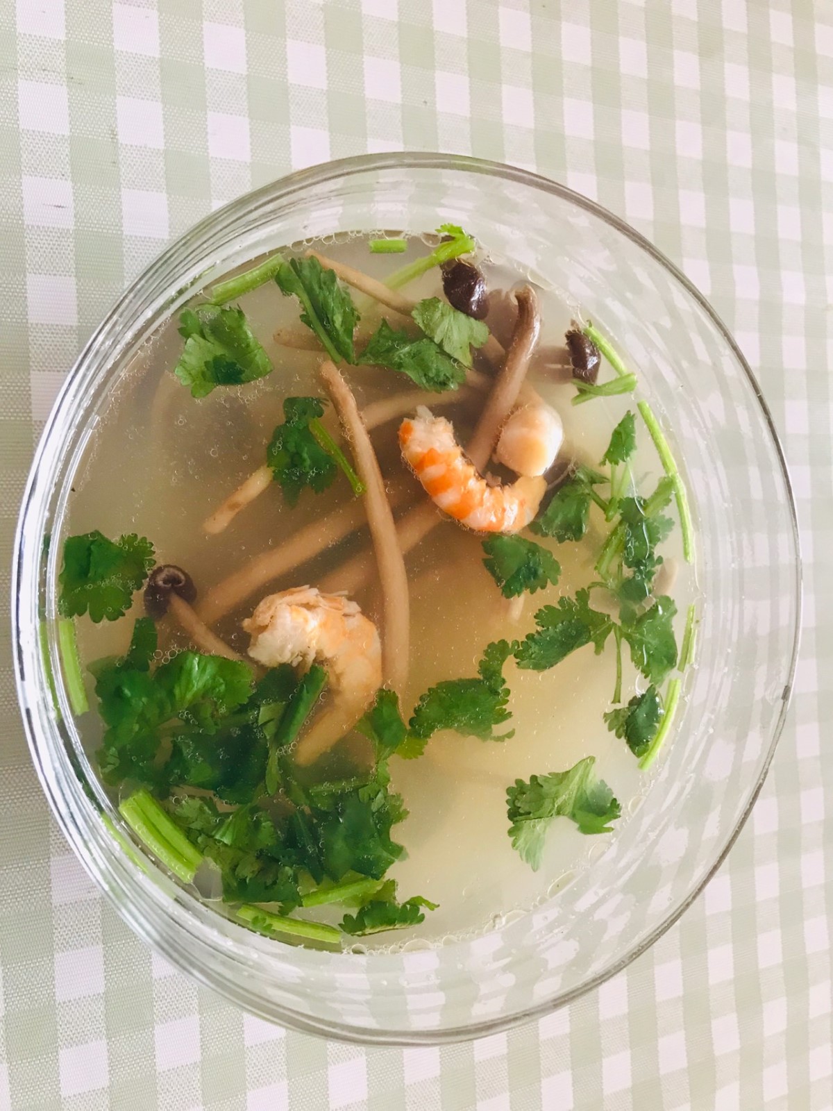 锅里加水,加入姜片,虾仁,扇贝柱大火烧开,转小火煮20分钟 , 20分钟后汤变乳白色,鲜香味浓郁散发,加入茶树菇在煮5分钟,加盐,胡椒粉,芝麻油