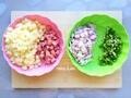 火腿肠、土豆切丁,鸡蛋打散。