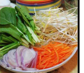 胡萝卜、洋葱、韭菜切丝切段,青菜切段,葱切花。