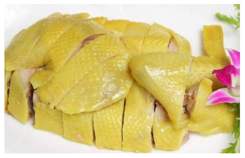 30分钟之后将三黄鸡捞出来放入冷水之中浸泡10分钟,这样鸡皮会预热发紧,在吃的时候鸡皮会给人十分Q弹有嚼劲的感觉。