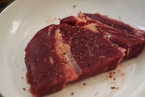 1.撒上黑胡椒腌制牛排