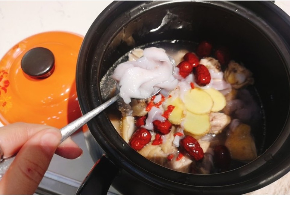 加红枣、枸杞、椰子水继续炖15分钟