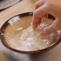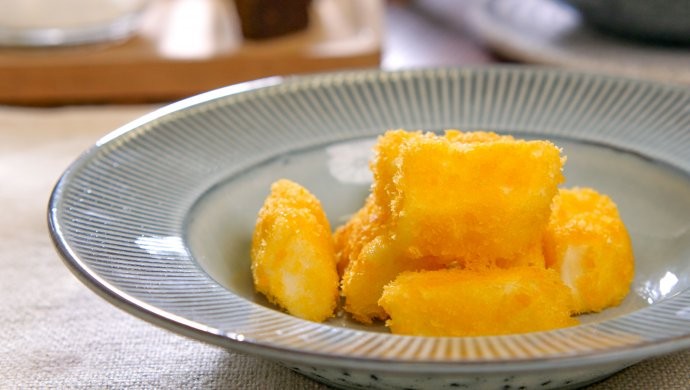 拿出来切小块,依次裹上、淀粉、蛋液、面包糠。
