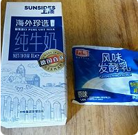 准备好一份酸奶,一份全脂纯牛奶。两者比例为1比3左右。