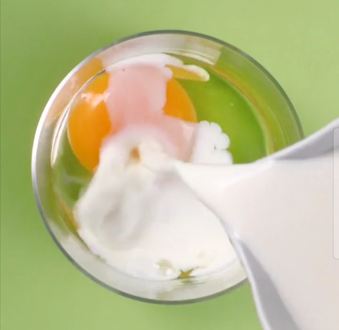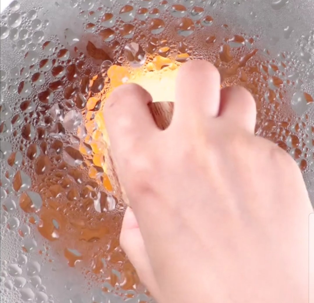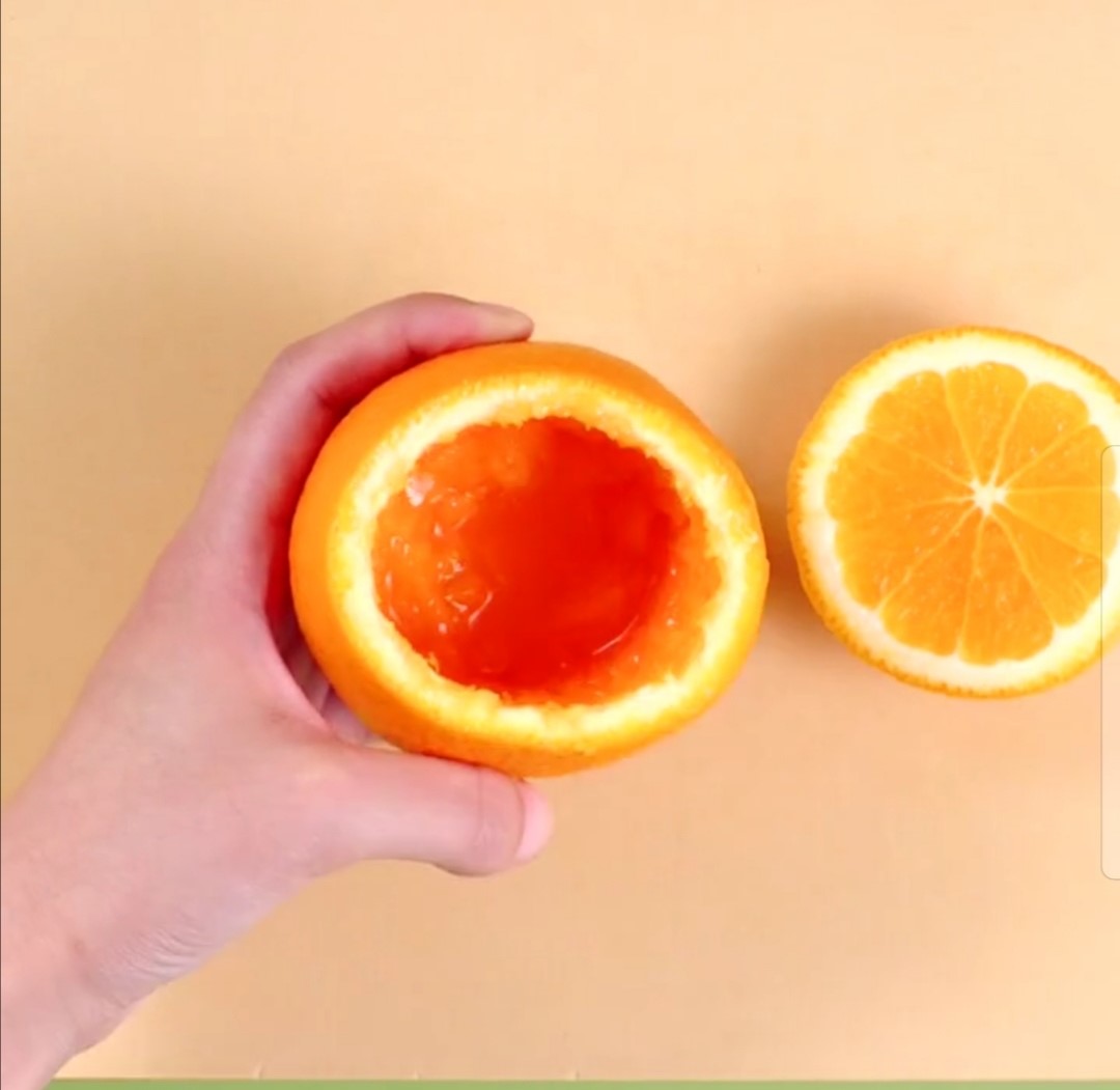 鸡蛋倒入橙子,盖上保鲜膜,牙签轧孔