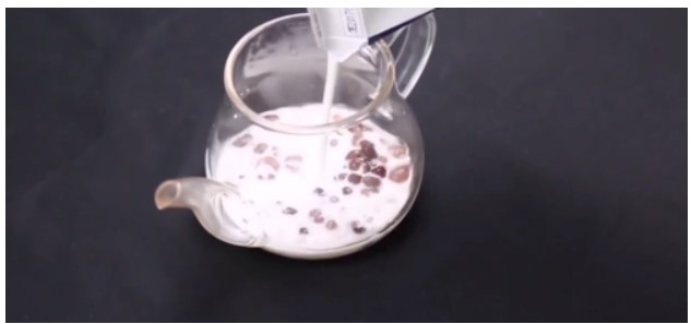 搅拌过滤网,让红茶和奶茶融合搅拌一下,红豆奶茶就做好啦
