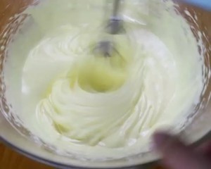 将蛋黄、全蛋、细砂糖都倒入盆里。然后用打蛋器高速打发,打发至有明显纹路。然后转最低速整理气泡。整理好气泡的面糊非常细腻 面糊滴落后也不易消失。但是还是有流动性的哦