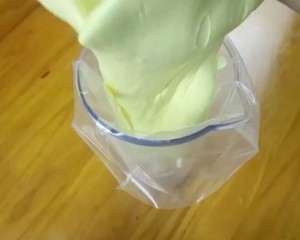 拌匀的面糊装入裱花袋 用刮刀往前推面糊。排出空气