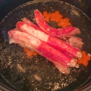 继续用焯乌冬的水,下胡萝卜片和肥牛焯一下