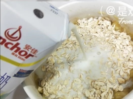 加入牛奶,没过燕麦一点即可。