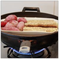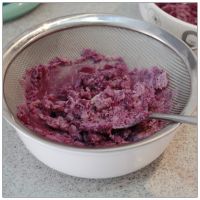 用一根筷子可以轻松插入,紫薯和山药就蒸好了。蒸好的紫薯去皮,按压过筛。