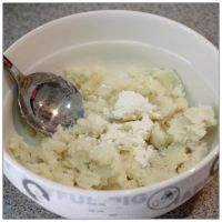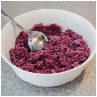 山药也一样处理,去皮,压成泥状,再根据自己的口感放一些糖粉。