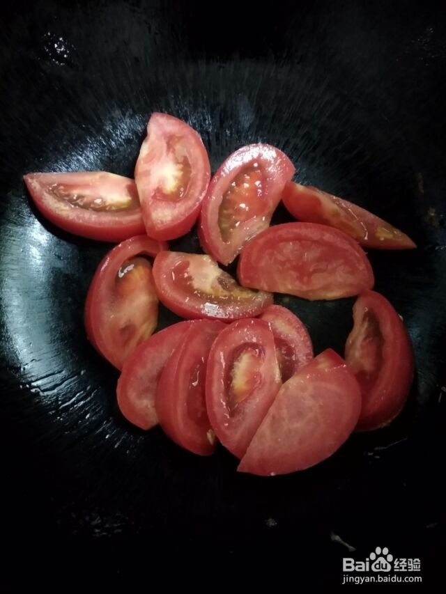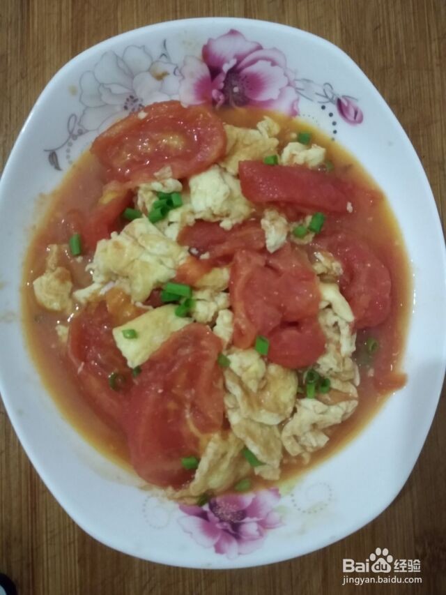 铲出鸡蛋后,重下一点油,烧热后下入切好的番茄,一分半钟后下入备用的蛋碎,加少许水,食盐,盖上锅盖,中火一分钟后起锅。再洒上葱花。