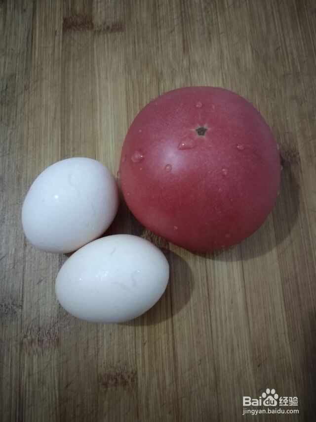 两个鸡蛋,一个西红柿,一根小葱备用
