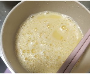 锅烧热,加入多一点的油,然后冷油时加入蛋液。