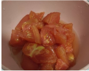 西红柿洗净后,表皮切十字花刀,用开水淋烫或者水煮,方便去皮。去皮后的西红柿去蒂切块备用。