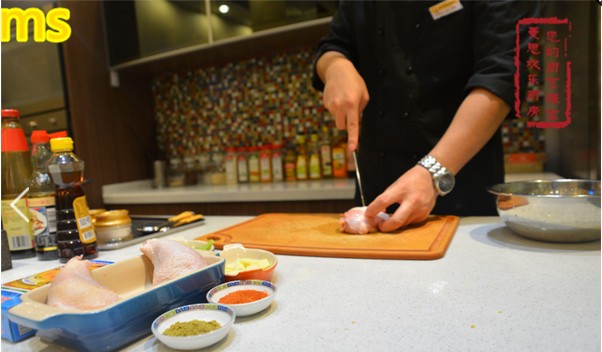 首先让我们来处理大鸡腿! 为了腌制它们的时候好好入味儿~ 请先用刀在肉厚的地方划几道,然后像容嬷嬷一样 扎扎扎! (也可以用竹签扎,扎到你满意为止)