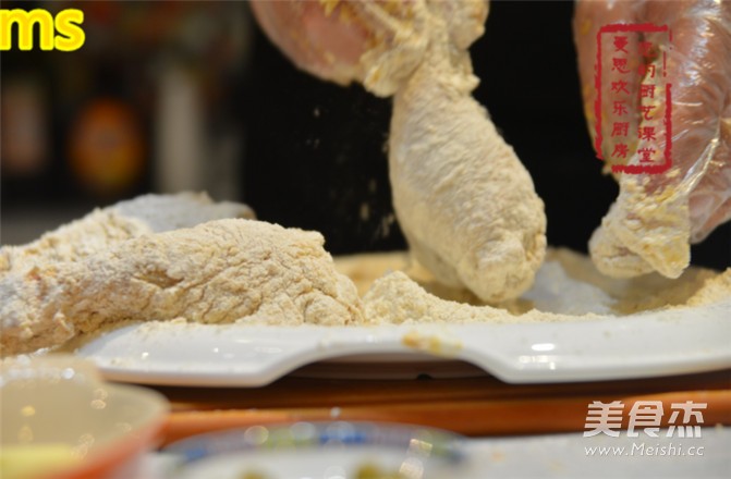 腌好的鸡腿们裹上一层脆炸粉