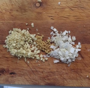 醒面的同时可以将葱姜蒜切成末,但蒜别切太碎