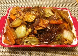炒好盛出装盘或者直接一锅端,虽然没放肉但是每样菜都吸足了汤汁超级入味,特别是土豆、粉条软糯入味,豆腐外焦里嫩,都超级好吃。冬天做这么一锅,保证不同口味的人都觉得好吃,家里人少的话就不用做其他菜了。