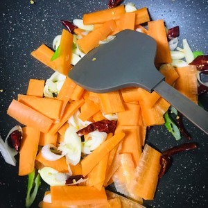 倒入胡萝卜片翻炒片刻。