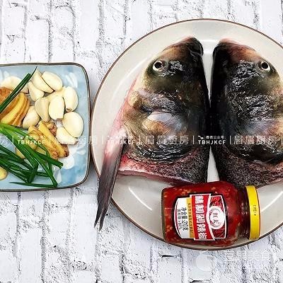 1.将鱼头洗净,从鱼唇正中剖开,在鱼头下面鱼肉较厚的部分斜划几刀