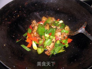 最后,加入青蒜炒出香味
