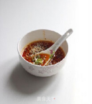 碗中入辣椒面与白芝麻适量,倒入香油即为油辣子(香油:这里指干香料煸过的油)