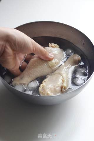 捞出鸡腿入冰块中,冰镇20分钟(冰块尽量全部覆盖)