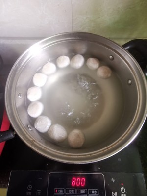 猪骨头熬煮汤底,放入肉丸煮沸。
