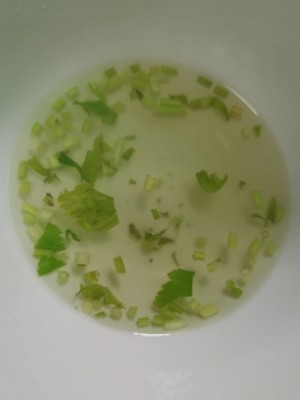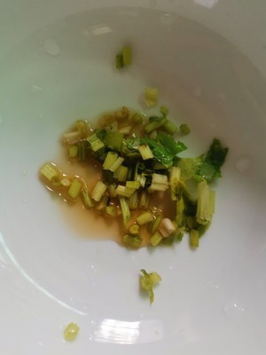 碗里放入鱼露2勺、味精1克、葱花粒若干。