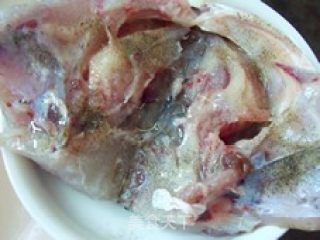 鱼头加盐搓洗干净,冲掉盐水,撒胡椒粉一茶匙,食用油半汤匙,盐半茶匙,鸡精半茶匙,搓揉均匀,腌渍十分钟。