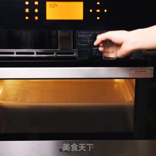 放进预热好的蒸烤箱下层。选择上下火功能180℃,烘烤20分钟。