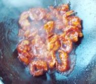 炸约1分钟,至虾仁浮在油面上呈金黄色后捞出。转大火待油温升高后再复炸20秒左右,捞出沥去多余的油。